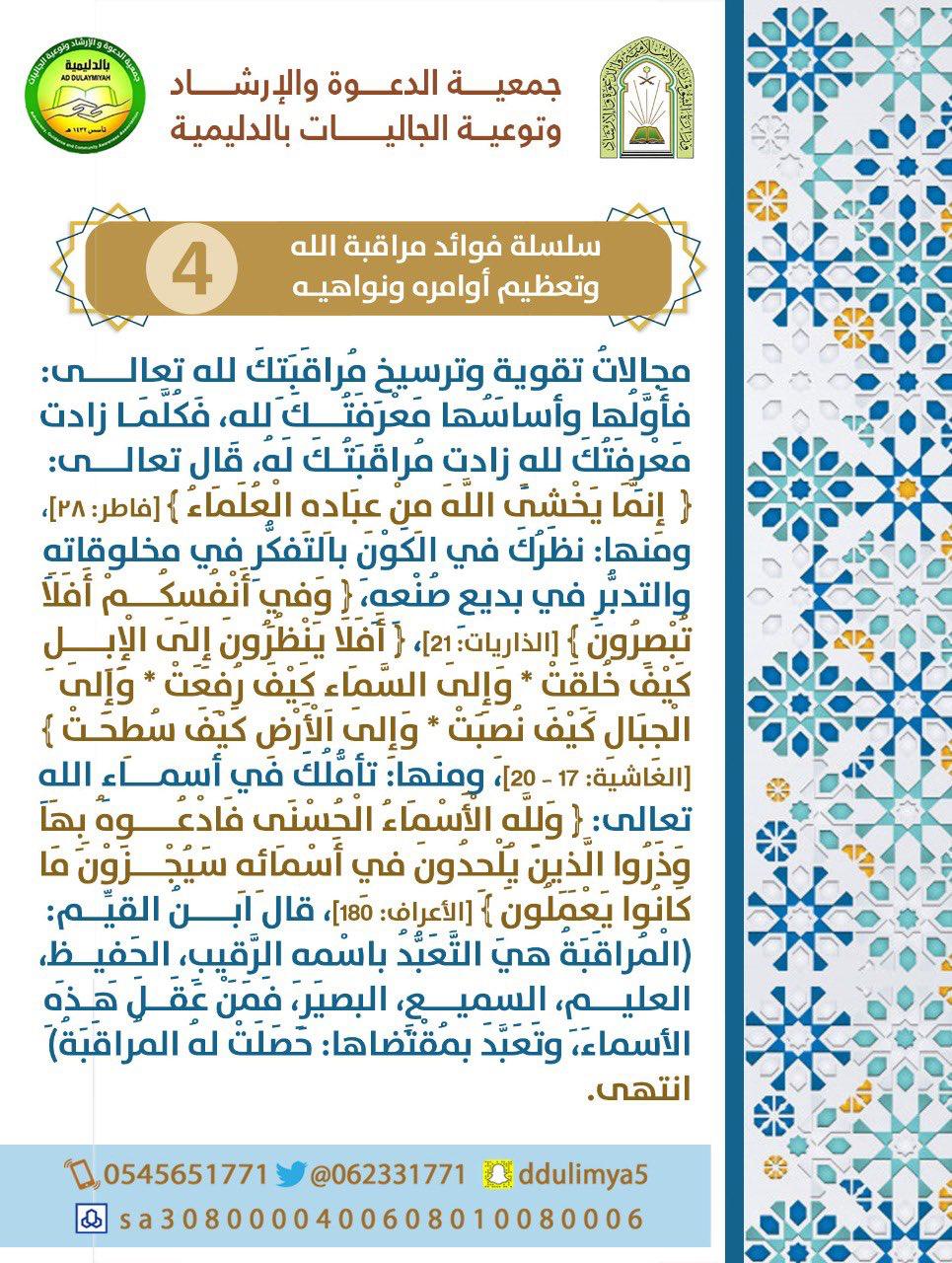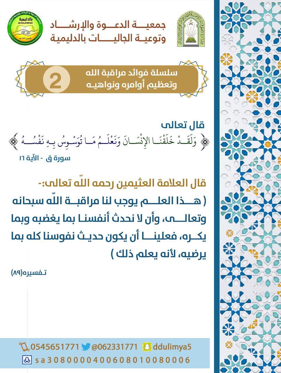 سلسلة فوائد مراقبة الله وتعظيم أوامره و نواهيه